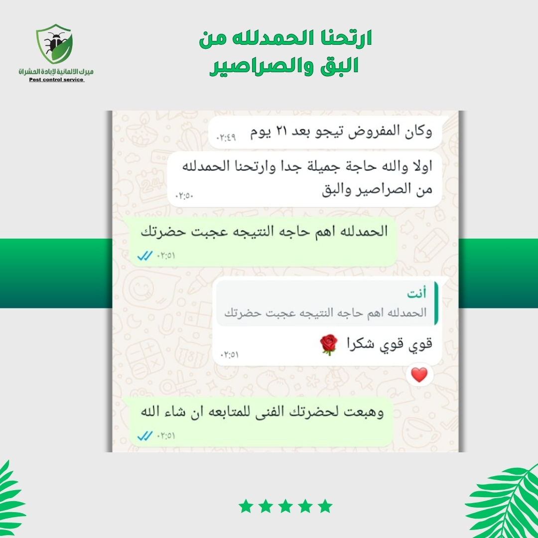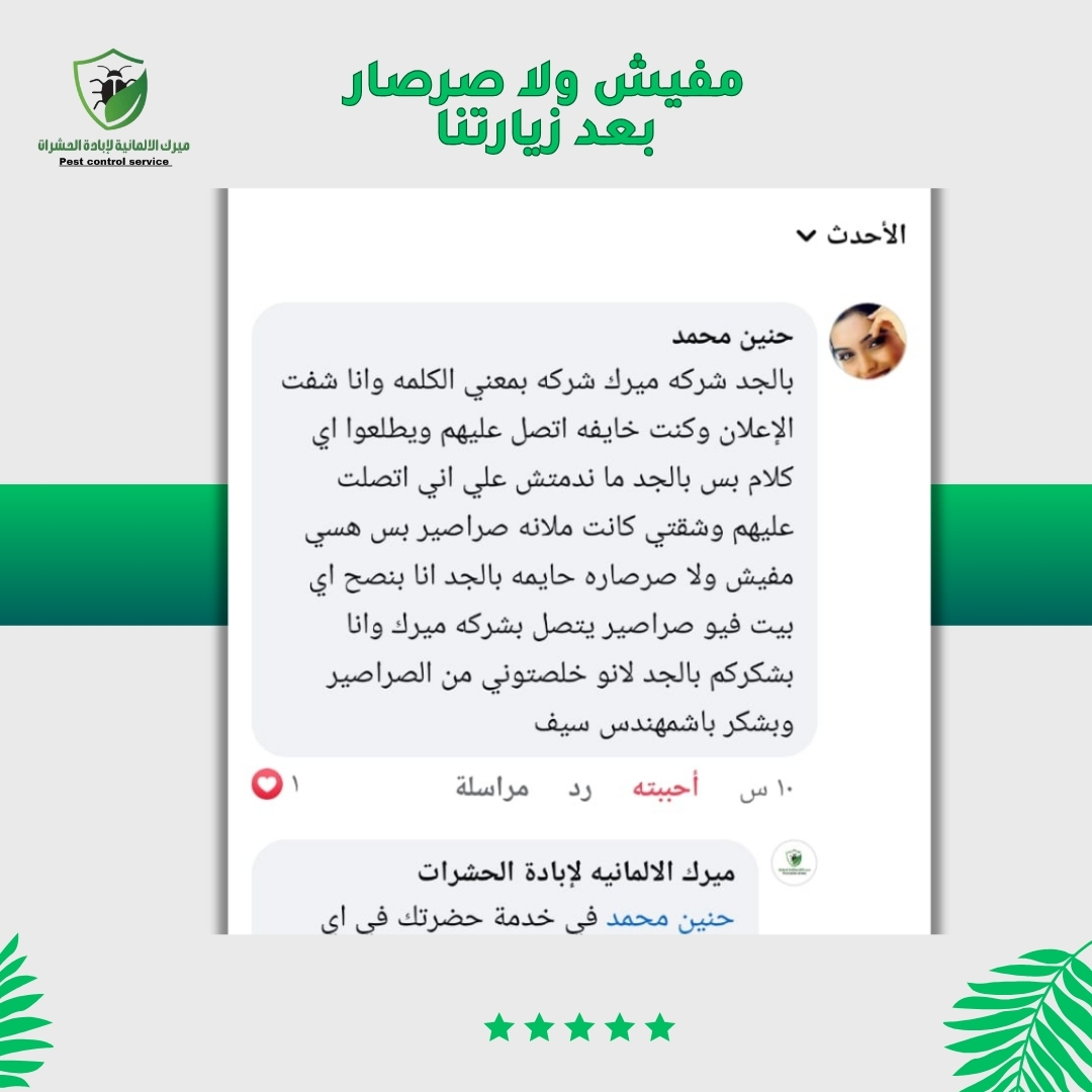 في ميرك الألمانية، نقدم حلول مكافحة حشرات احترافية وآمنة، مع ضمان أعلى جودة خدمة وسرعة في الاستجابة، لنمنحك بيئة صحية ونظيفة خالية من أي إزعاج ومن اهم مميزاتنا
